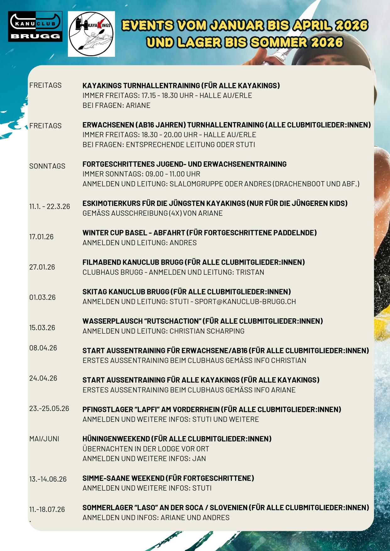 Für Rückmeldungen sind wir immer dankbar. Falls etwas nicht so funktioniert wie es sollte, bitte ein E-Mail an den Webmaster schicken: webadmin@kanuclub-brugg.ch